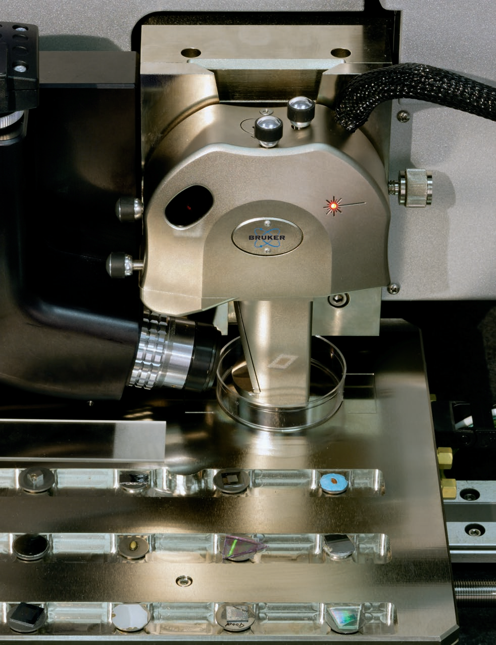 原子力显微镜(Atomic Force Microscope,简称AFM)是一种用于研究表面形貌和表面特性的高分辨率扫描探针显微镜。它利用微悬臂上的针尖与样品表面之间的相互作用力来获取表面形貌和表面特性信息。AFM可以测试各种材料表面的形貌、粗糙度、弹性、硬度、化学反应等特性,广泛应用于纳米科学研究领域。