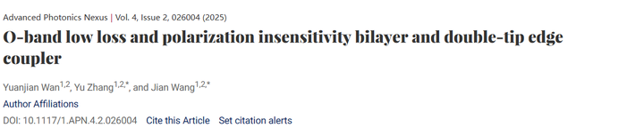 近日,有教授团队提出了一种双层双尖端端面耦合器,通过创新结构与工艺设计,成功在O波段实现TE/TM双模高效耦合。实验结果表明,TE模式耦合损耗低至1.18 dB/facet,TM模式耦合损耗仅为1.46 dB/facet(1310 nm波长),且在整个O波段内性能稳定,兼容商用硅光工艺。该成果为解决O波段端面耦合器的偏振敏感问题提供了有效方案。研究以“O-Band Low Loss and Polarization Insensitivity Bilayer and Double-tip Edge Coupler”为题。