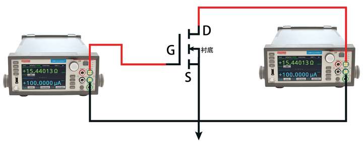 (1)SMU #1:Force HI 连接 MOSFET 的栅极 (Gate),Force LO 与 SMU #2 的 Force LO 以及器件的源极 (Source) 共接(通常通过三通适配器实现)。