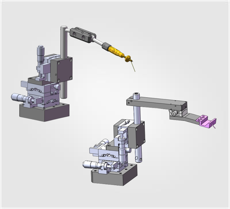 万向调节夹具,探针螺纹锁紧,可360°角度旋转调节;