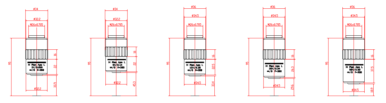 PLCTS 95 mm平场复消色差物镜采用了先进的光学设计和优质的光学材料,该物镜能够提供清晰、细腻、高精度的像素信息。复消色差设计则校正了红、黄、蓝三条谱线的轴向色差、像散和场曲,进一步提高了成像质量。放大倍率5x、20x、50x三种可选,其安装螺纹为M26 mm×0.706 mm外螺纹.