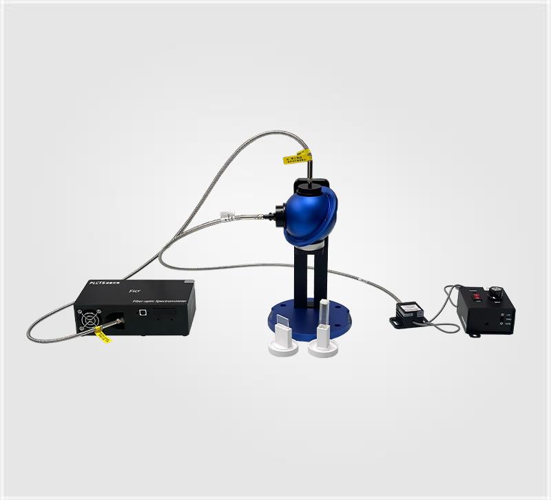 PLCTS 光致发光测试系统主要由积分球、光纤光谱仪、多模光纤、激发光源、样品夹具/比色皿、积分球支架等组成。光纤光谱仪采用滨松制冷型面阵CCD传感器,具有高灵敏度、低噪声、高信噪比低温漂等特点。通过制冷技术抑制探测器热噪声,光谱仪的暗电流显著降低,信噪比大幅提升,同时能够检测到更微弱的光信号。工作波长为200nm-1100nm,积分球采用进口的高漫反射材料PTFE高温烧制而成,反射率高达99%,光学接口选用标准的SMA905,具有良好的朗伯特性。激发光源配置的我司光纤耦合LED光源典型波长375nm/405nm/532nm等,可根据客户需求定制话波长选择。
