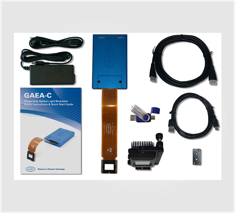 空间光调制器(SLM)是一种对光波的空间分布做特性调制的设备,其主要是利用电信号对光信号(光波的振幅、相位、偏振态甚至是波长)来做调制。谱量光电GAEA-C 是 HOLOEYE 推出的紧凑型 4K 纯相位 LCOS 空间光调制器(SLM),是 GAEA-2.1 的精简优化版本,采用紧凑式驱动模块设计,体积比 GAEA-2.1 更小,更适配嵌入式 / 便携式光学系统。GAEA-C 反射式相位空间光调制器 (SLM) 包括一个带有标准数字视频接口 (HDMI) 的驱动单元,以及一个相位 LCOS(硅基液晶)微显示屏组成。SLM分辨率为1000 万像素(4K,最大4000 x 2160像素),像素间距为 3.74 μm。