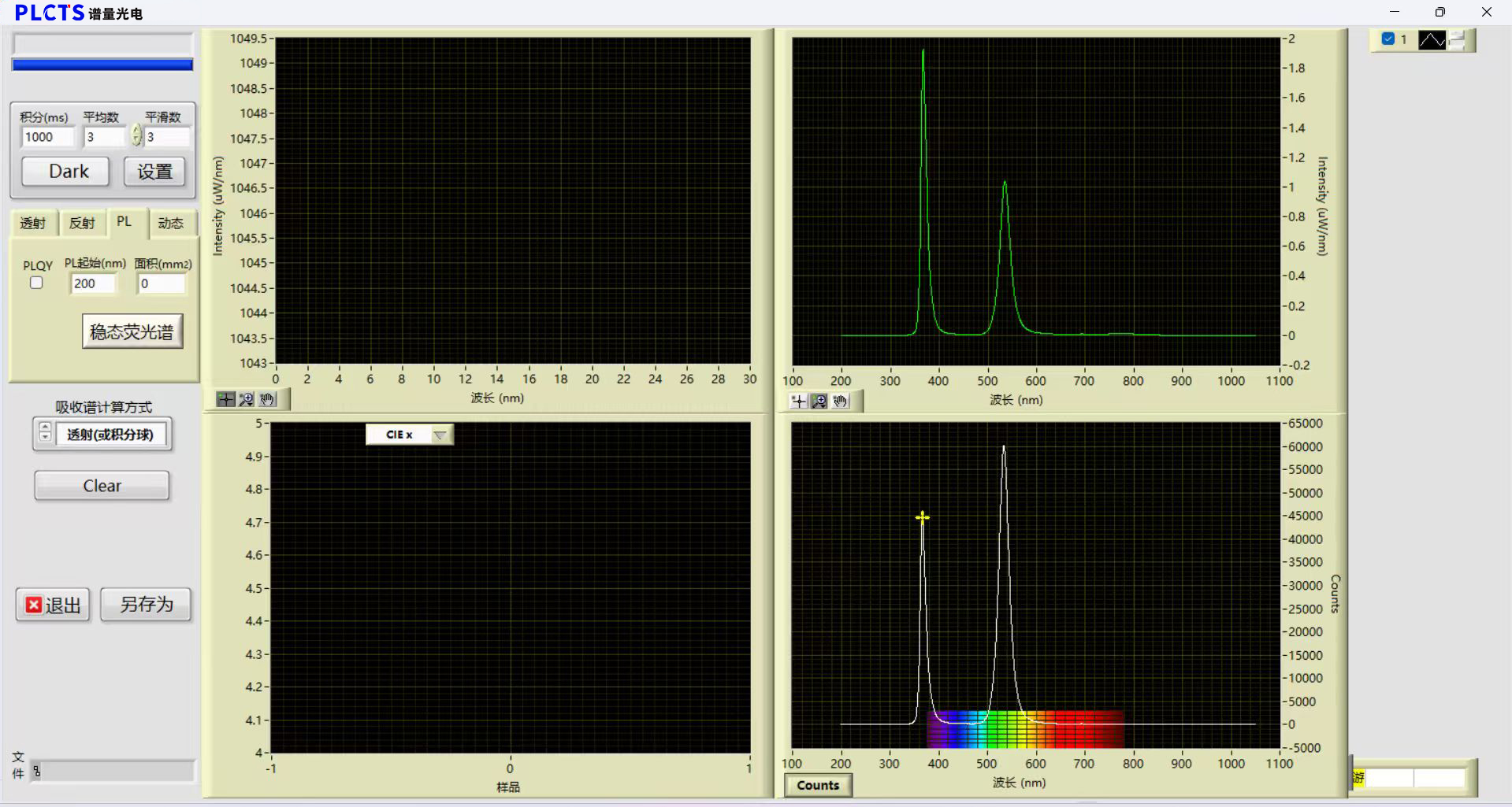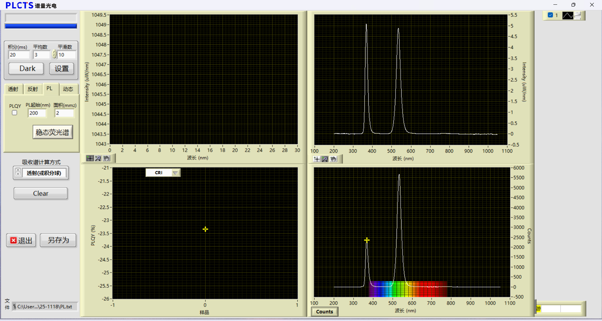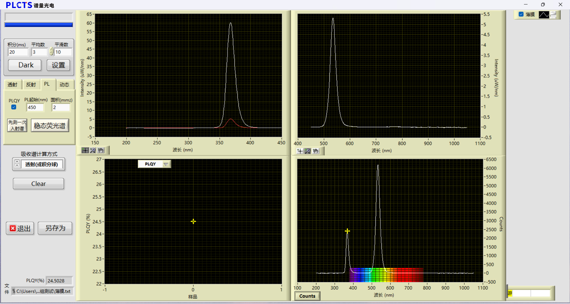 e:控制与计算:软件系统,控制测量流程,自动采集空白和样品的光谱,并依据标准公式计算PLQY。